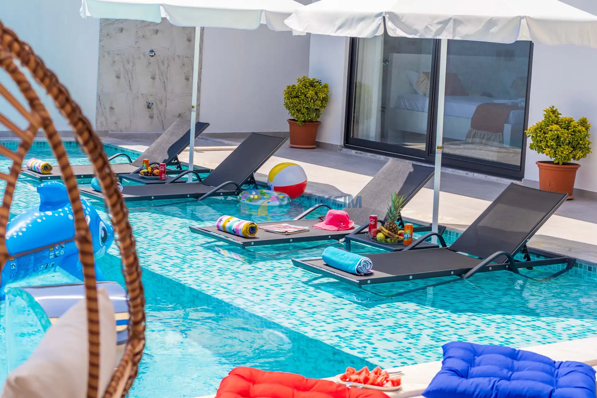 If requested one week before the villa check-in date, we will try to assist you depending on the availability of a baby bed and high chair.